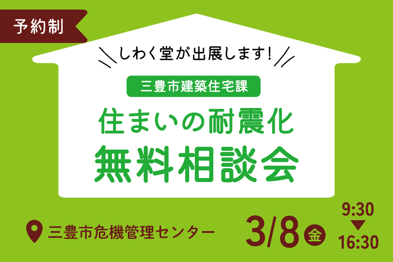 三豊市建築住宅課による「住まいの耐震化無料相談会」にしわく堂が出展します!