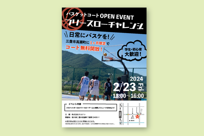 この度バスケットコート場完成記念して、フリースローイベントを開催します!