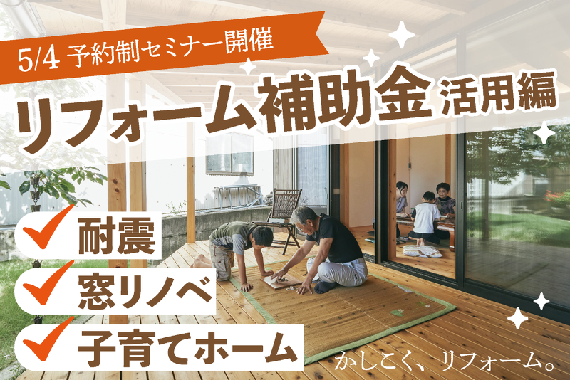 無料セミナー開催!5/4(土)暮らしの作戦会議 -2024年リフォーム補助金活用編-