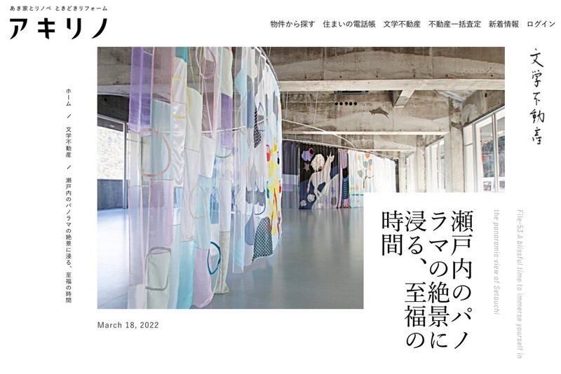 2022年03月22日(火) PUBLICATION メディア掲載WEBメディア「文学不動産」| 絶景劇場 空き家ポータルサイト「あき家とリノベ ときどきリフォーム」が運営するWEBメディア「文学不動産」に企画・設計監理を手がけました「絶景劇場」が掲載されました。 掲載ページはこちら