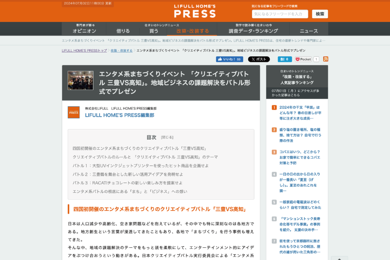 メディア掲載「LIFULL HOME'S PRESS」にて掲載されました!| CREATIVE BATTLE