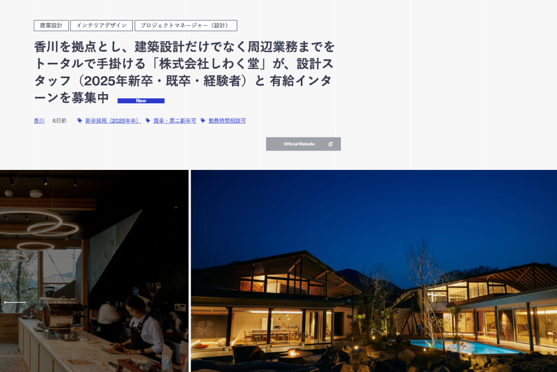 2025年03月04日(火) PUBLICATION 設計士募集中!建築系求人情報サイト「アーキテクチャーフォトジョブボード」| リクルート掲載 建築系求人情報サイト「アーキテクチャーフォトジョブボード」にリクルート情報を掲載しました。 少しでも興味がある方!まずはゆるっとお話してみませんか。 詳しくはこちらから