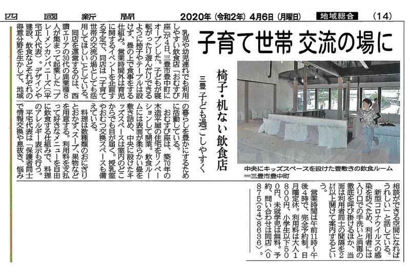 しわく堂にて、設計監理・工事施工を担当した「おむすび座」が四国新聞に掲載されました。