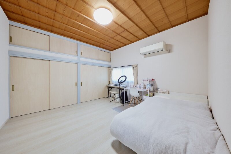 コストを抑えるために既存の天井や収納を利用。塗装や床貼りは自分たちでDIY。部屋づくりに関わることで愛着のある空間になります。