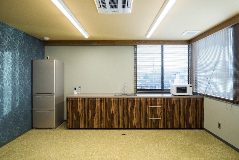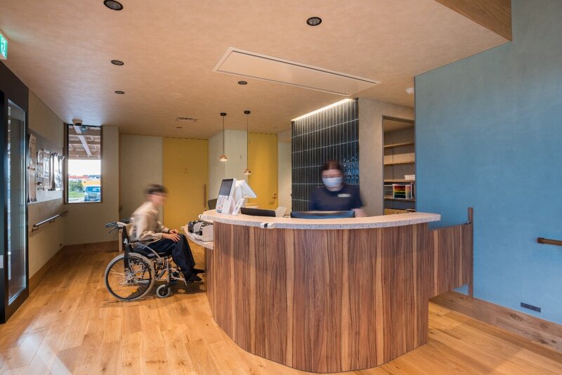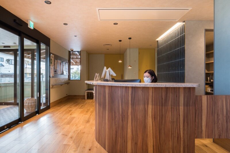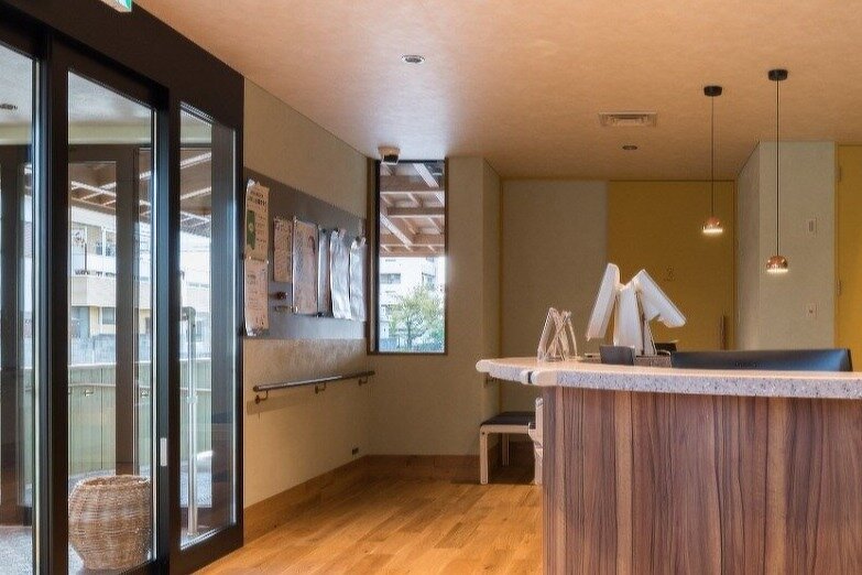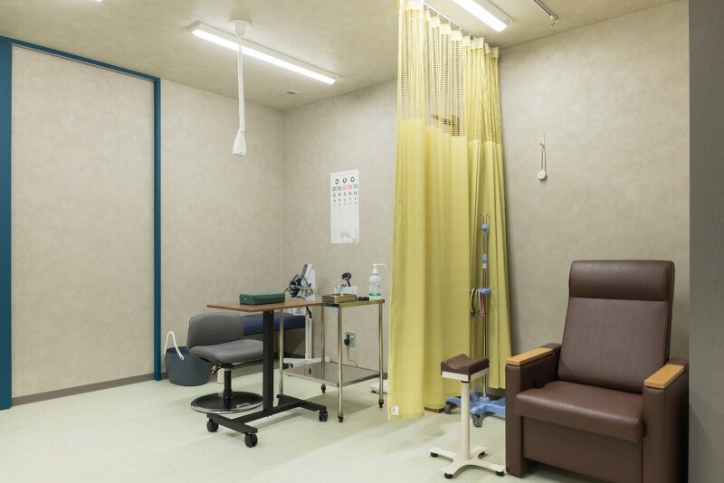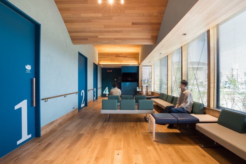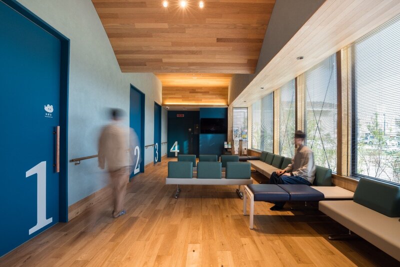 受付からも窓越しに見通しがきくように設計し、患者の転倒にも素早く気づき対応することができる優しいデザインです。