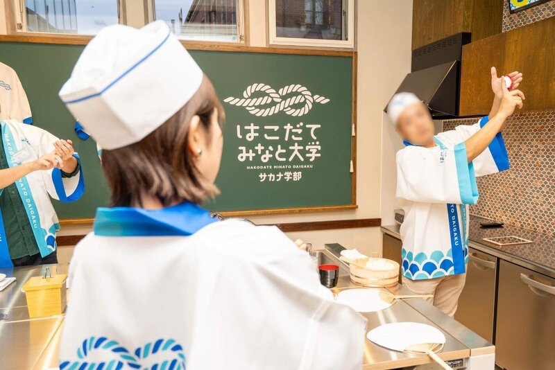 北海道の函館港。ひともモノも新鮮な魚介類もあらゆるものが集まってくる港町に、はこだてみなと大学が開校。大人も子どももお寿司を握って、魚を捌ける「さかな学部のゼミ体験教室」、食べて学べる「海味食堂」。大学のような知的好奇心が刺激される体験複合施設である。