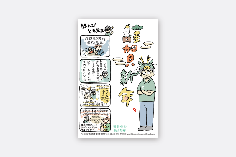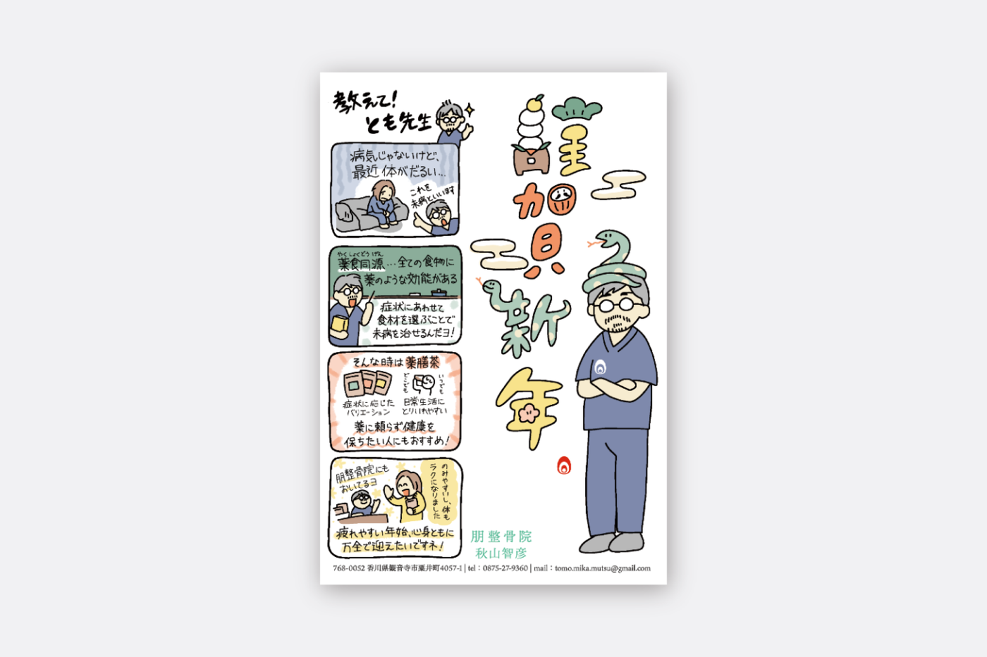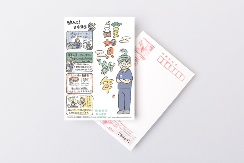 そこで、整骨院を利用できる幅の認知を広める年賀はがきの形を提案。