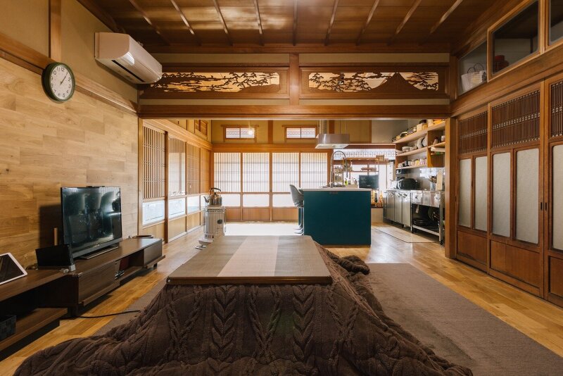 大家族のニーズに見合う空き家はなかなか見つからず苦戦している中、平屋で分棟型の理想の物件を発見。建物の状態もよく、精密で美しい欄間や椅子が印象的。まさに理想的な八尾の家が見つかった。