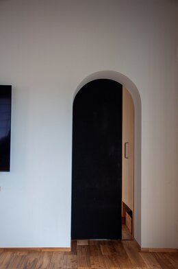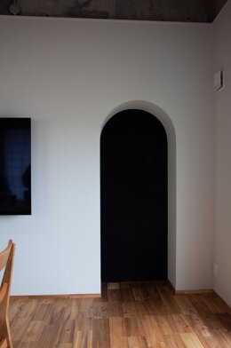 アール の開口の奥は闇!?こちらもご主人の遊びころ。建具に世界一黒いといわれている塗料を塗っている。
