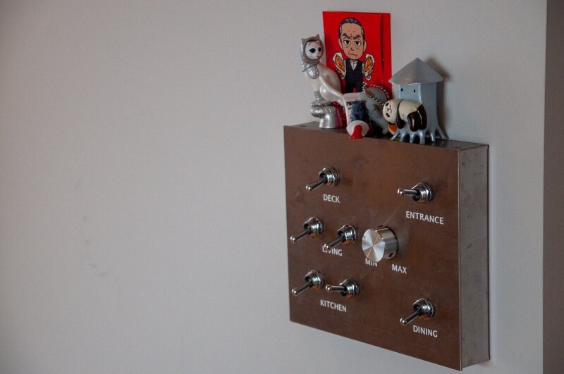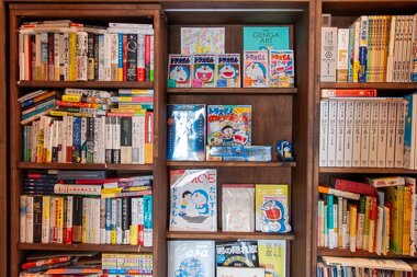 大量の蔵書に、漫画、アート、鉄道、お酒、何より無類のドラえもん好き。遊び心満載のご主人。