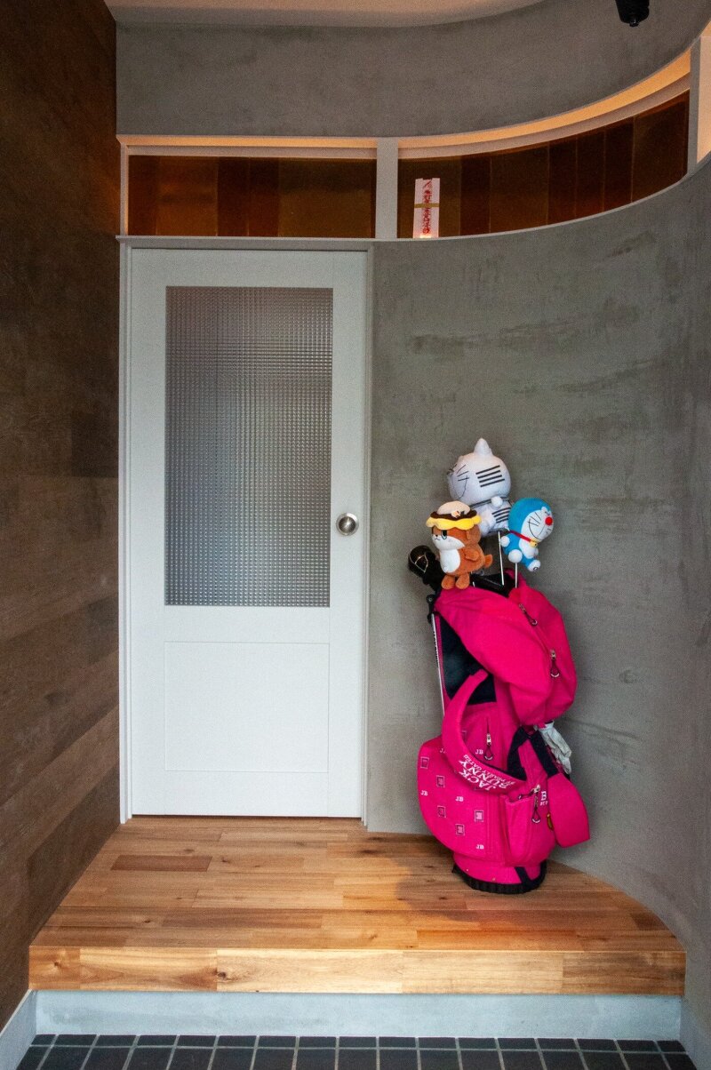 玄関はどこでもドアにしたいという旦那様の強い拘りにより、既存の玄関扉を活用し、特別にリメイクしました。