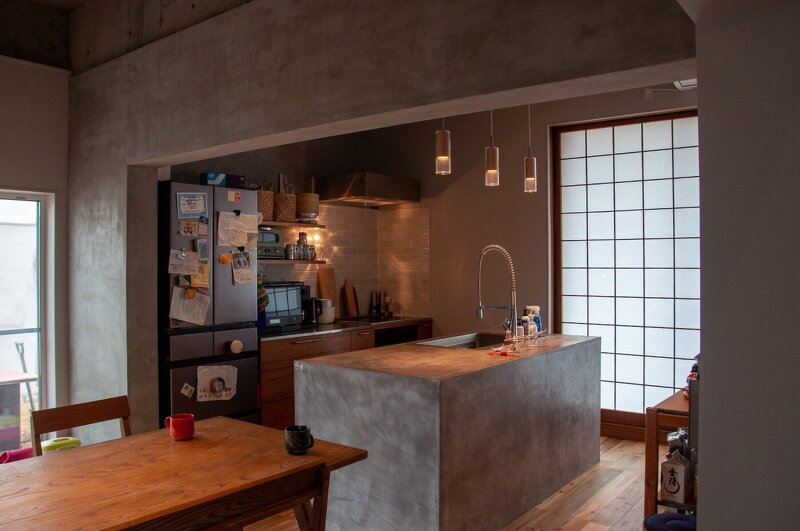 東の奥に位置するキッチンは、元々あった障子を生かして和モダンな空間に。