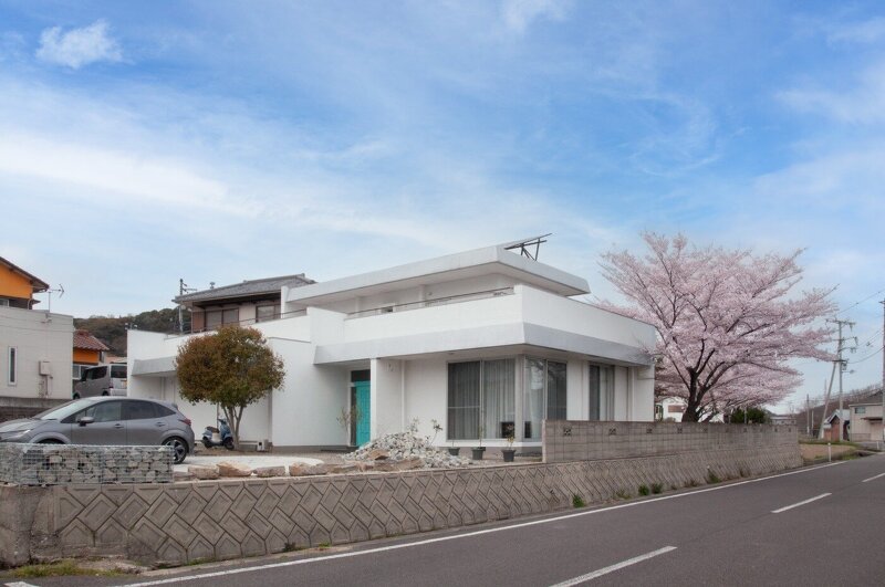 道沿いに一際目立つ白亜の建物と桜の巨木。ここが中野夫婦の新たに奏でる暮らしの場です。
