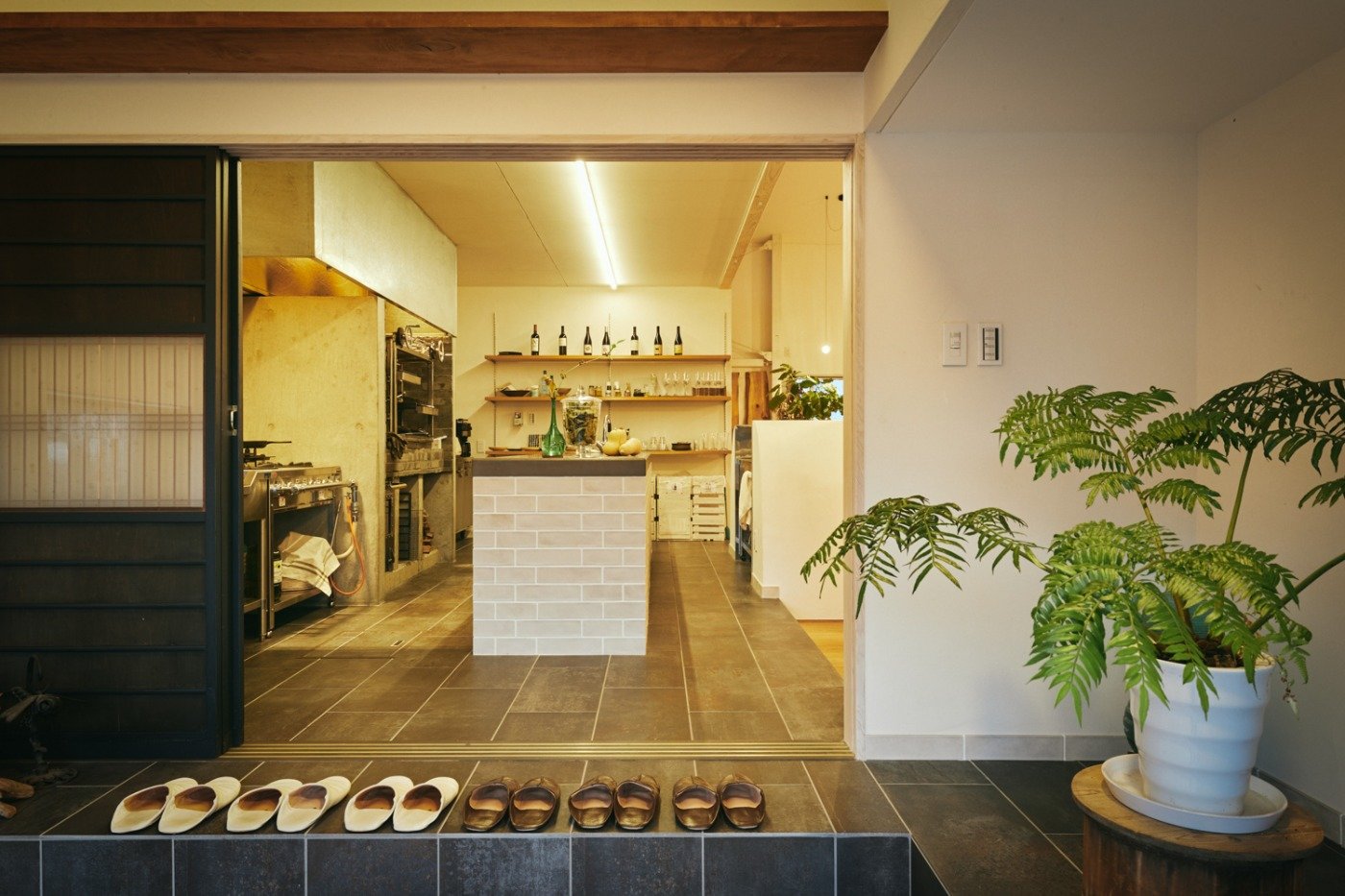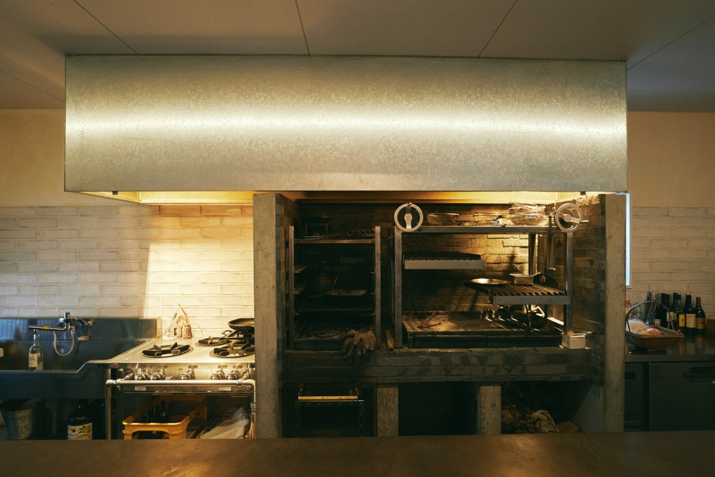 キッチンはゲストがホストである料理人 浪越さんと料理を楽しめるように大きなシンク付きの作業台を囲めるようになっています。