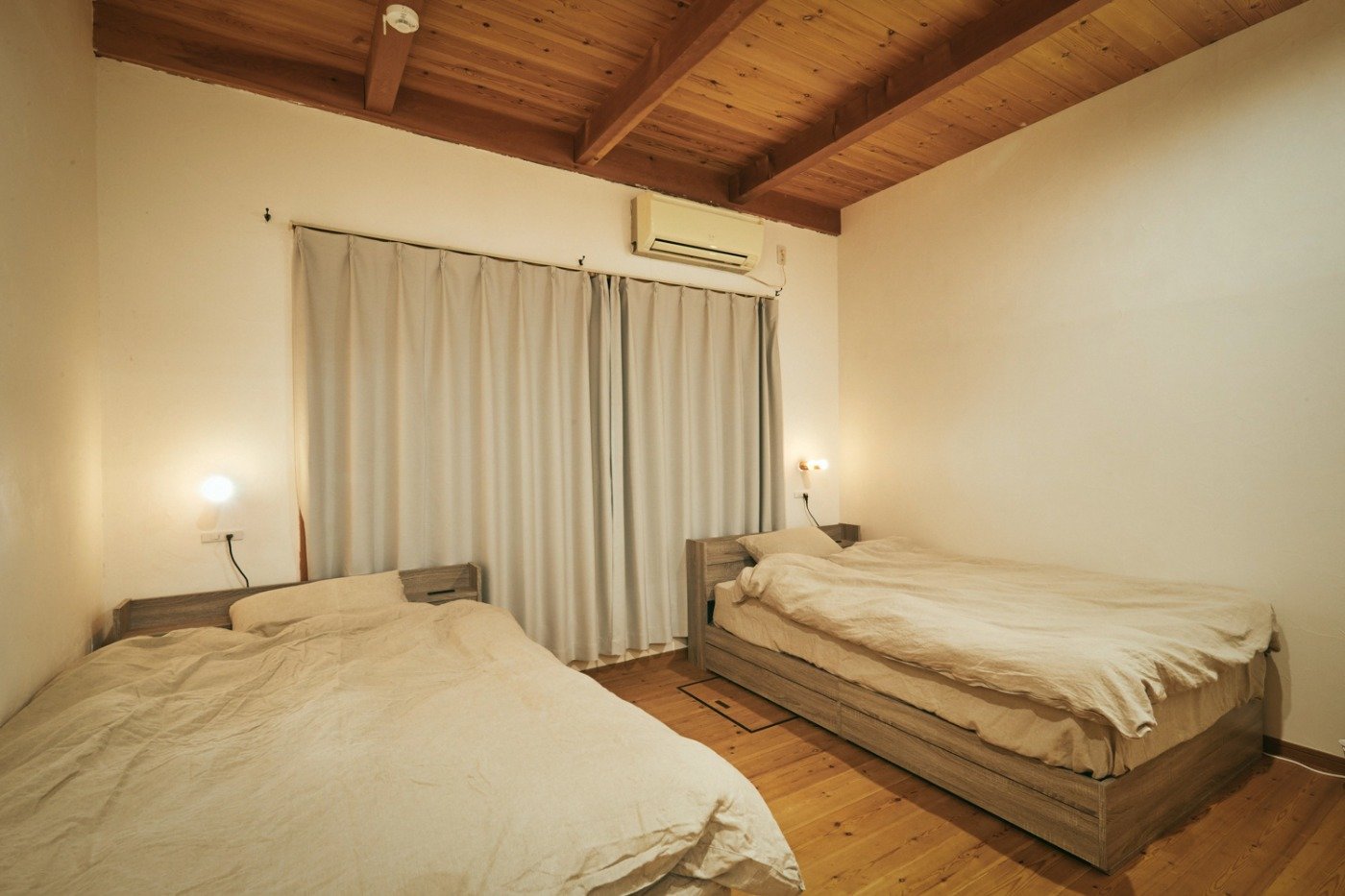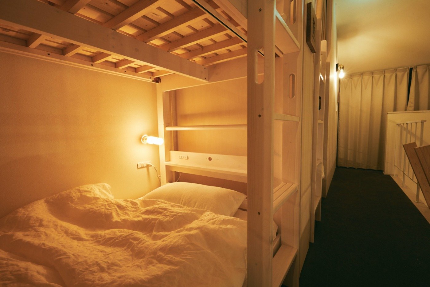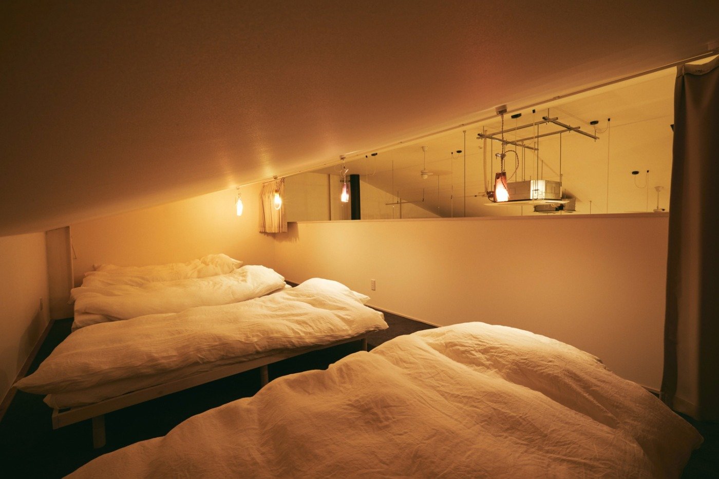 宿泊室は1階に2名用の個室が2室と、2階のロフトエリアにバンクベッドを含めて9ベッド用意されています。