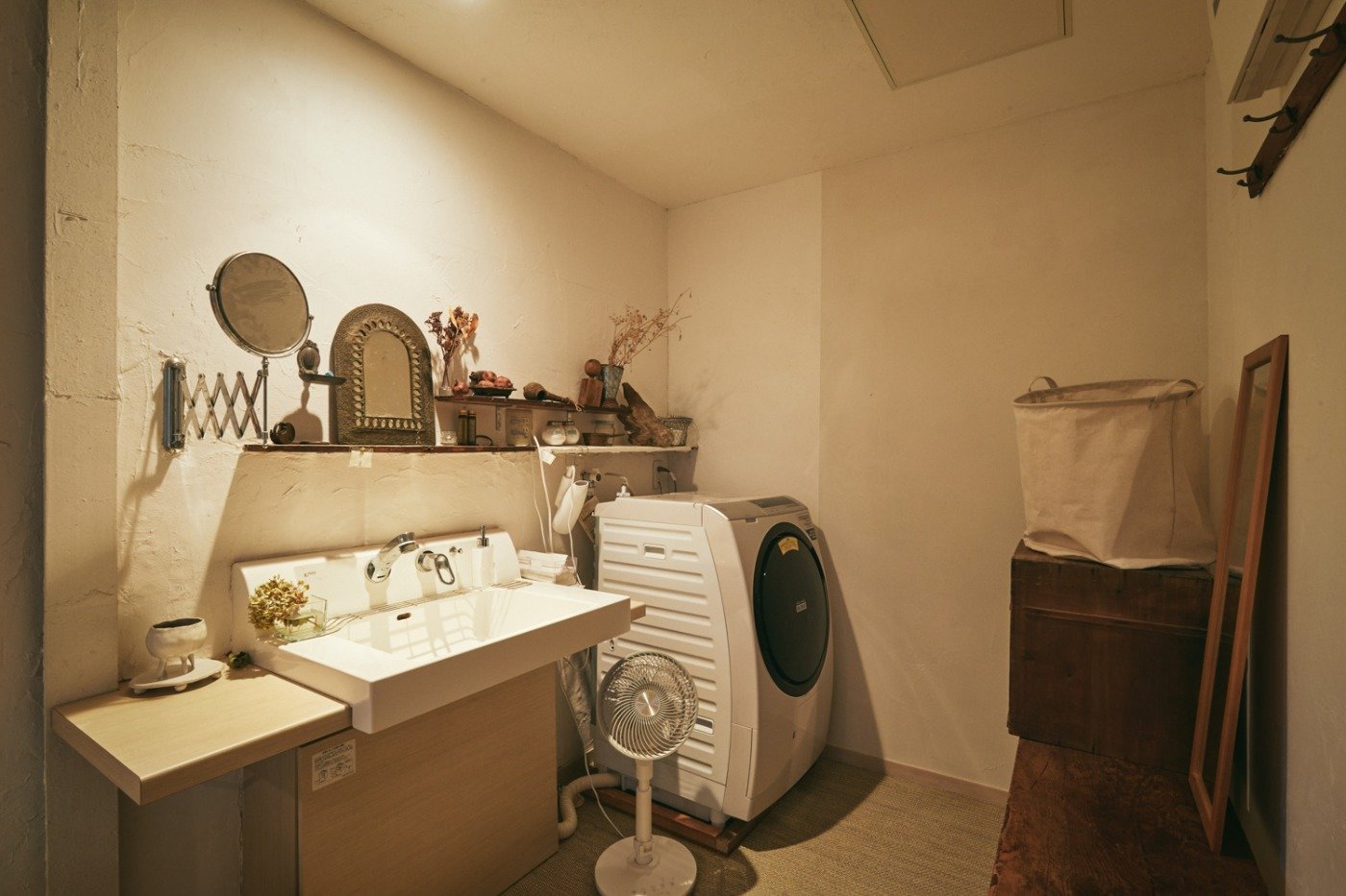 インテリアの備品や小物に、自然派な浪越さんの感性が散りばめられた、優しくてでもプリミティブで雄々しい雰囲気が醸し出されています。