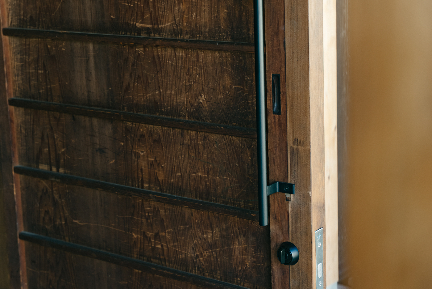 - 古材板貼り