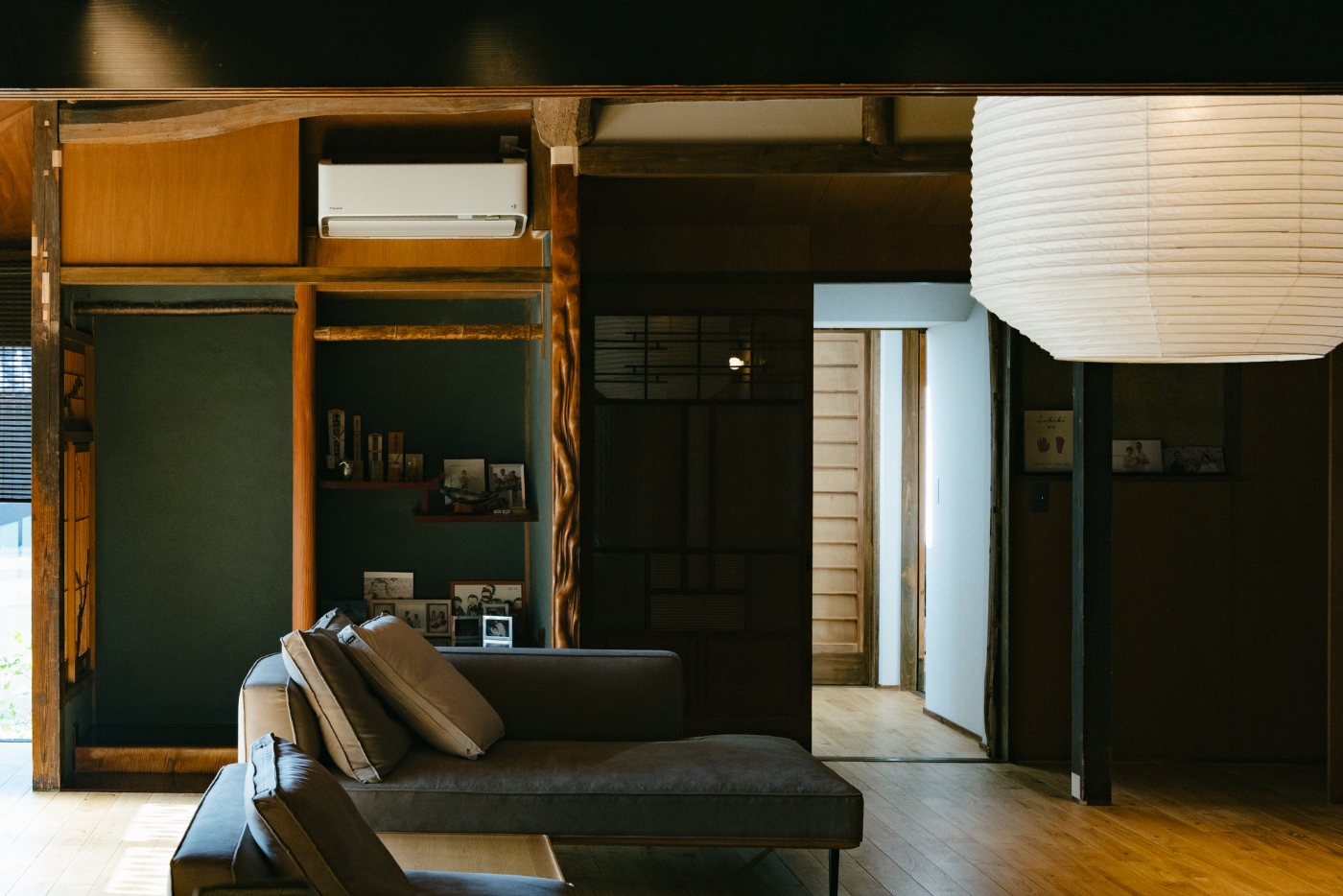 整理することで、明治期に建てられたオリジナルの農家屋の姿をよみがえらせつつ、日中に過ごすメインの空間は明治期の建物に、収納や寝室は昭和期の建物にと機能を分けました。