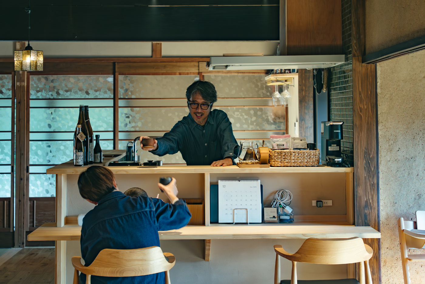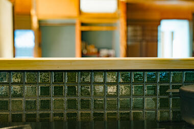 お酒が大好きなご夫婦のために、家族や友人たちと晩酌を楽しむための小料理屋スタイルのオープンキッチンを設計。
