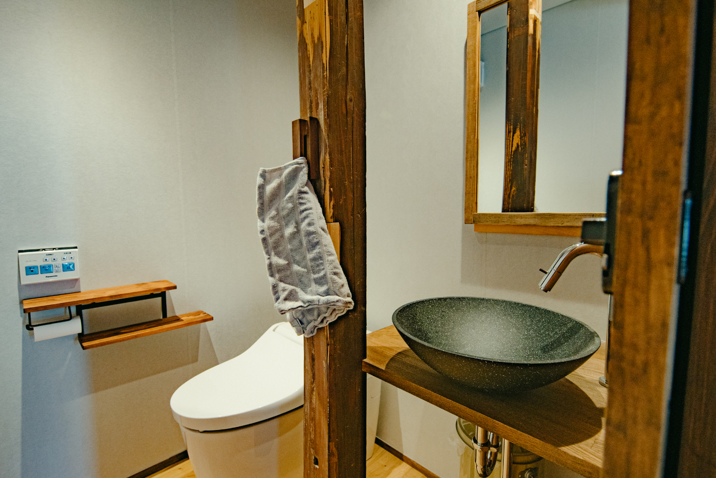 使い方を工夫しながら随所に利用することで、農家屋ならではの素朴な温もりと歴史を継承しています。